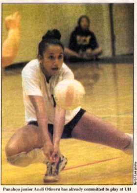 The first time I saw Punahou's Aneli Otineru was at the volleyball state championships when she was just a freshman and I was broadcasting the finals on TV. "Awe-inspiring" is the best phrase to describe what I watched that night. How can so much power and poise come together in such a young player, I kept saying over and over. But the other thing that touched me about Aneli was her sweet disposition and the way in which she cared so much for her family. She asked us, as well as the P.A. announcer, if she could be announced as "Aneli Cubi-Otineru."